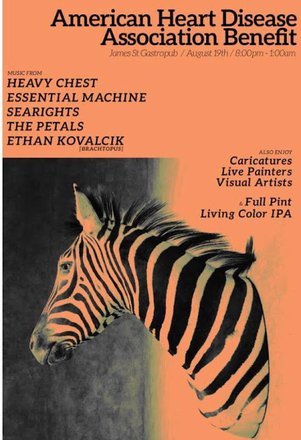 read more ➜There is a cool benefit show going down tomorrow (Saturday, August 19) at James Street Gastropub for the American Heart Association featuring a bunch of blog faves including Heavy Chest, Essential Machine and The Petals.